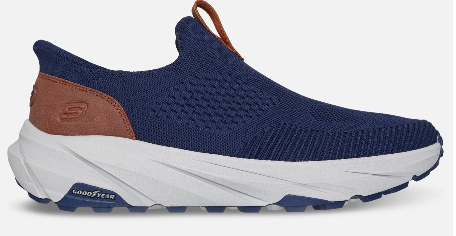 Kliv upp i gåkomfort med avslappnad stil i Skechers Hands Free Slip-ins® Relaxed Fit®: Conner - Milton. Denna snörfria, veganska slip-on har en stickad och syntetisk ovandel med hälla, en dämpad kolinfuserad Skechers Air-Cooled Memory Foam® innersula, Memory Arch™ dämpning för extra stöd samt en halksäker Goodyear® gummiyttersula.